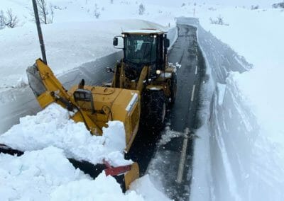 Hjullaster 18 tonn med skuffe, gafler og snøfres.