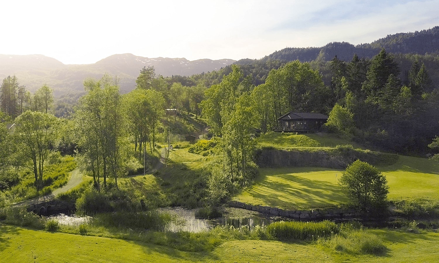 Sauda golfbane er en 9-hulls skogsbane med smale og krevende fairwayer i kupert terreng.