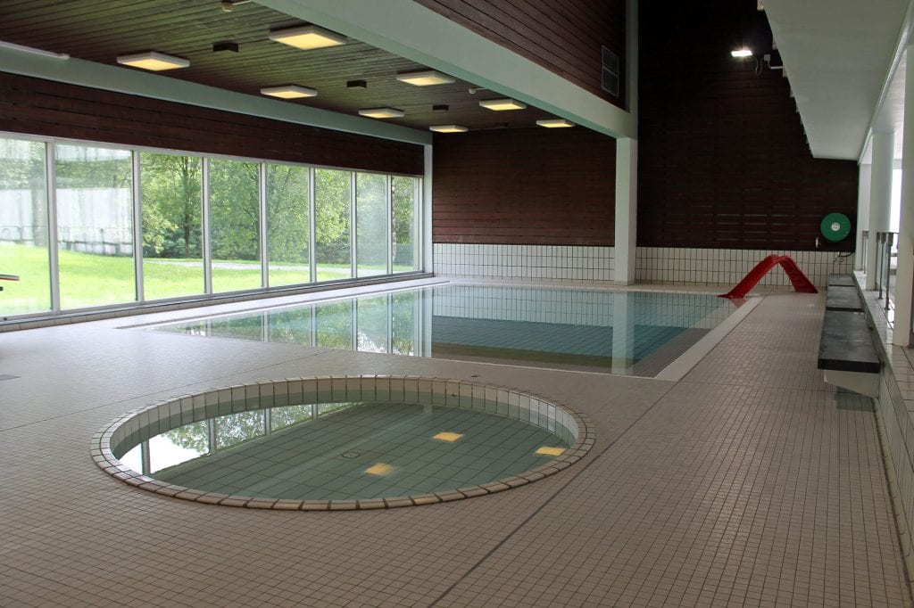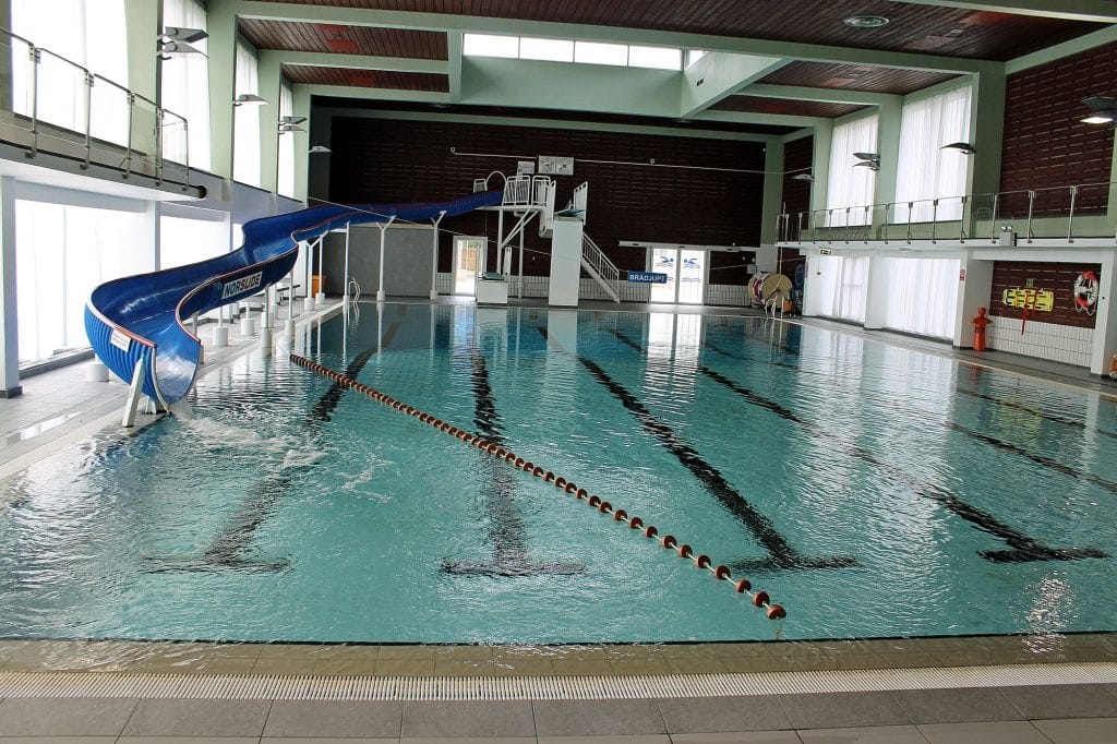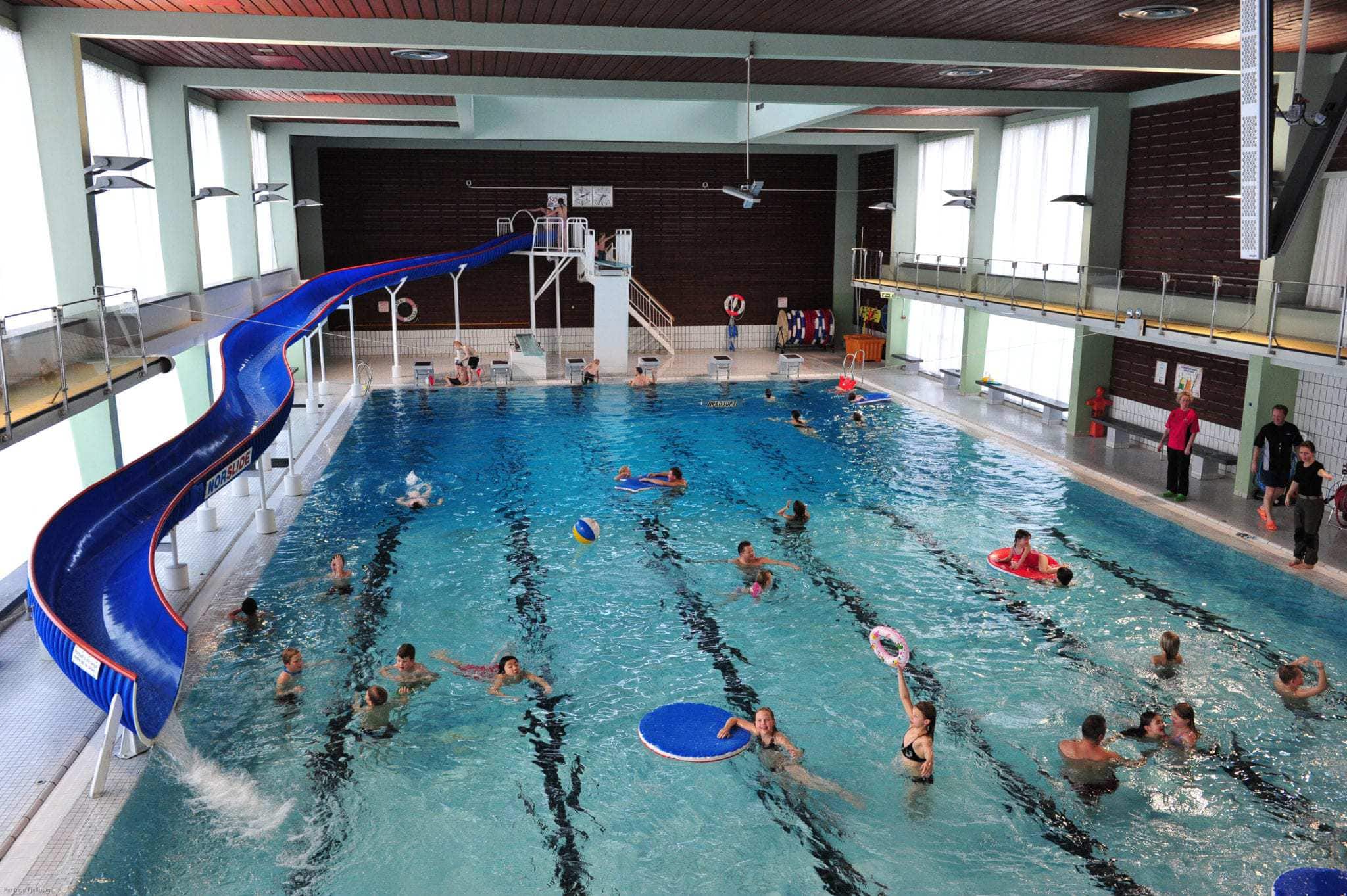 Temperatur i svømmehall: 29,6 grader. I svømmehallen er det 25 m basseng med vannsklie og stupebrett på 1 og 3 m. Bassenget er 1 meter dypt på det grunneste, 4 meter på det dypeste. For de minste har vi et mindre plaskebasseng og et opplæringsbasseng. Her finner du også en sittegruppe og benker langs bassengkanten.